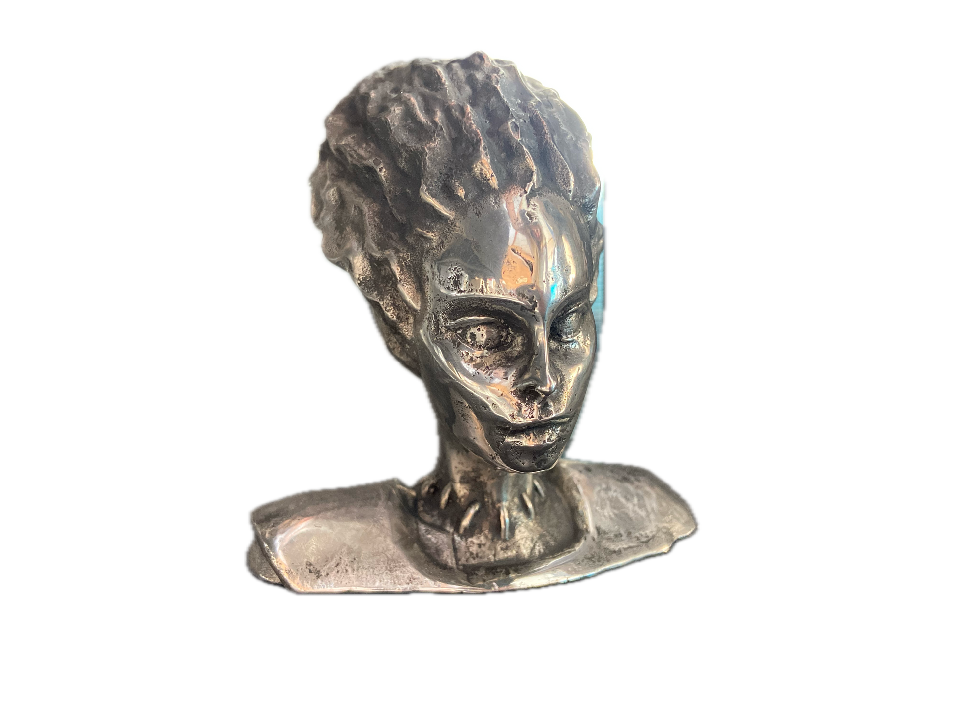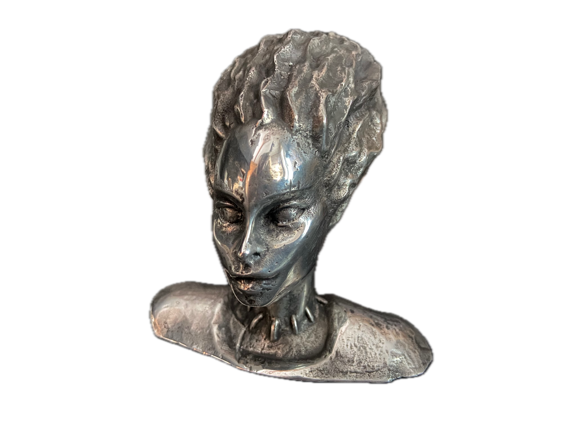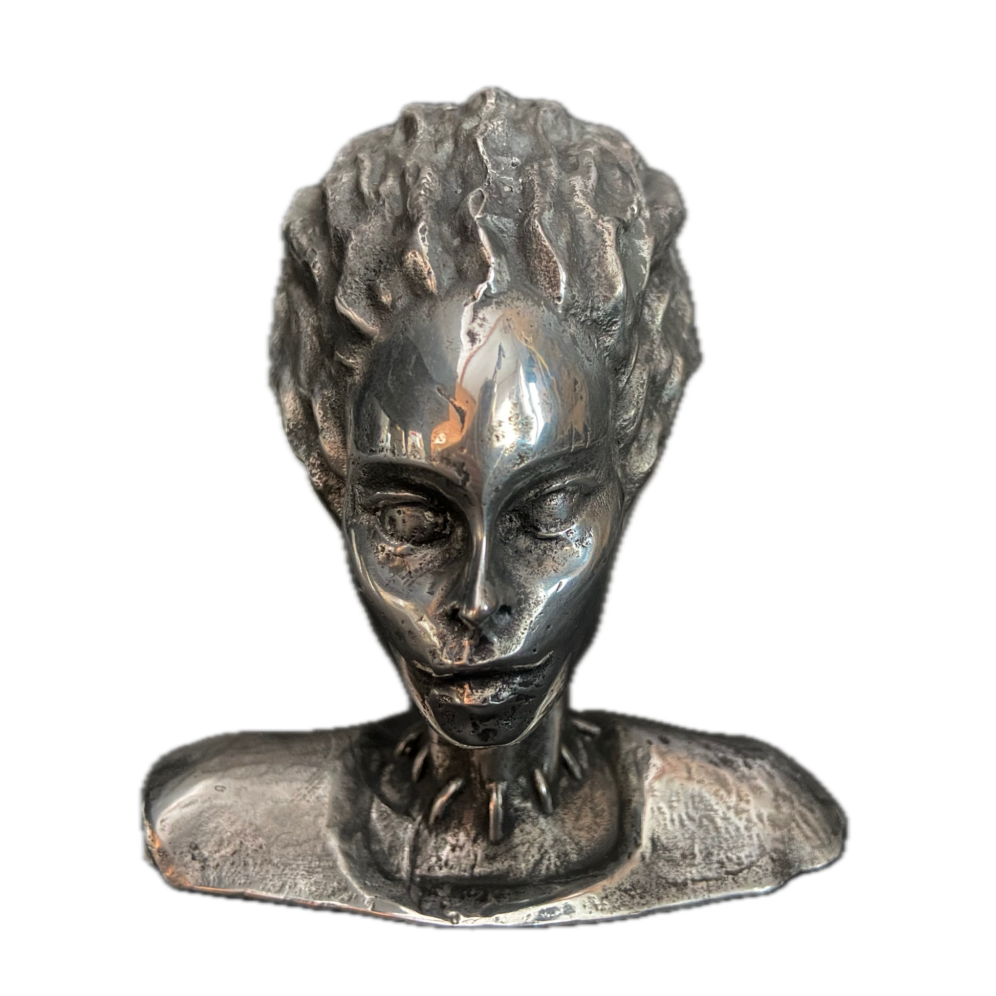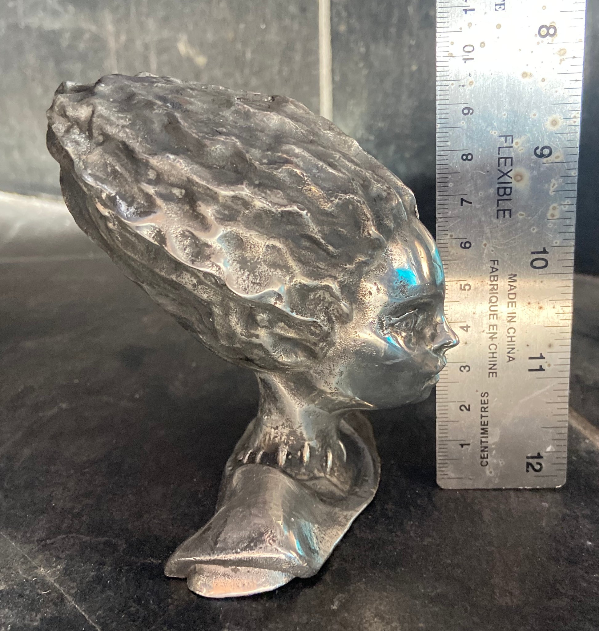 This Bride of Frankenstein hood ornament is hand cast in solid pewter in a one-person Canadian workshop. At over 1200 grams, it has the mass and presence of classic vintage hood ornaments—no resin, no shortcuts, no mass production.