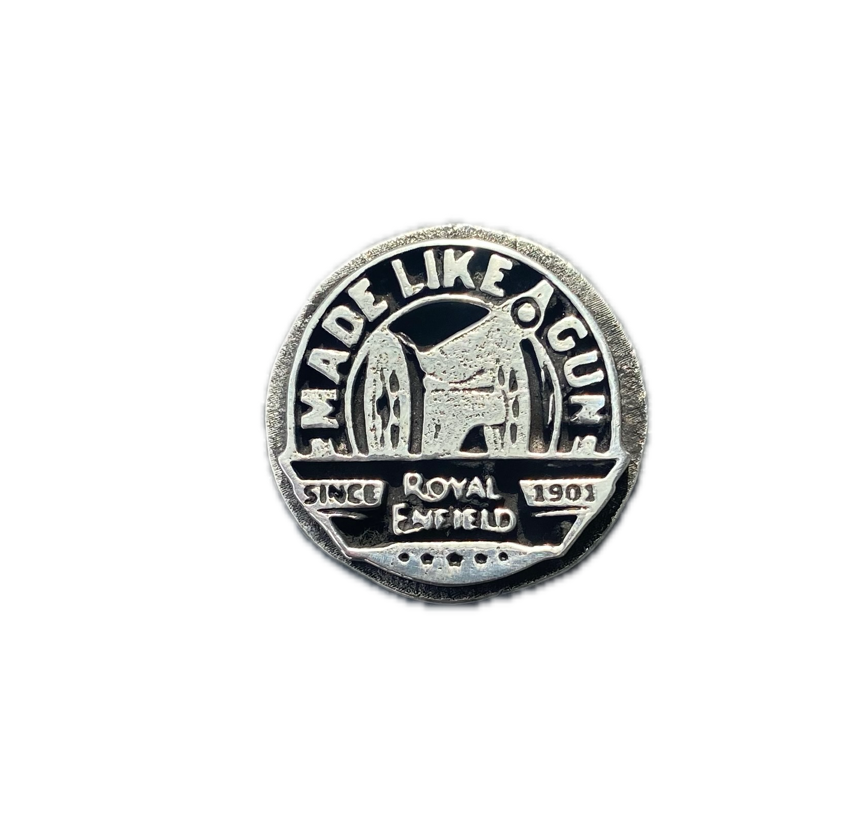 Each piece is individually cast by hand in a one-person workshop on Vancouver Island, giving it a weighty, authentic feel and a slightly unique finish. The detailed design highlights Royal Enfield’s iconic slogan — a perfect finishing touch for any Royal Enfield rider, custom build, or vintage motorcycle display.