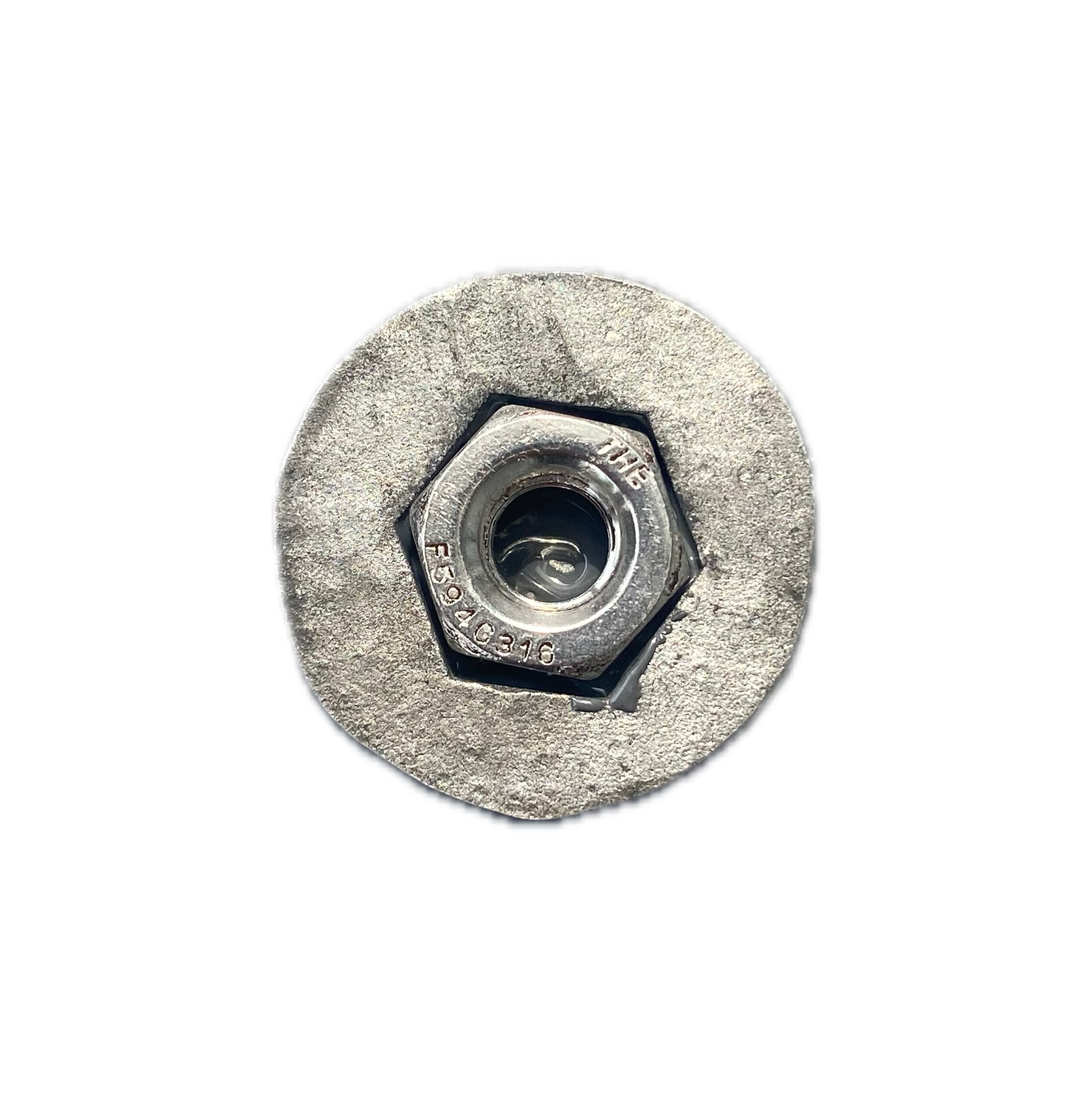 The bolt cover measures approximately 1" in diameter and comes with screw, nut and washer (5/8" or 1" screw length).